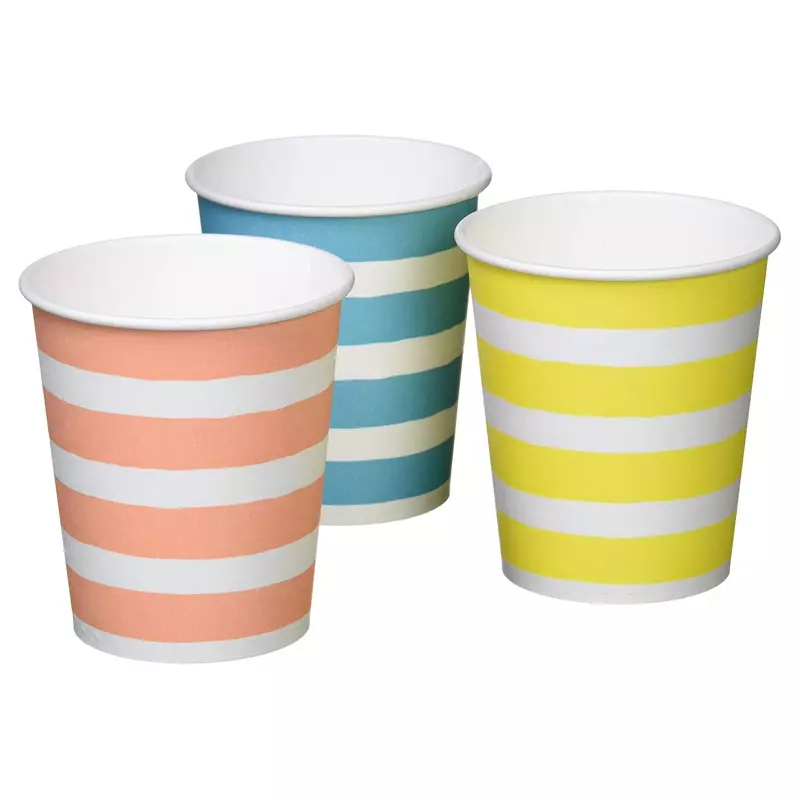 ถ้วยกระดาษเพรียวลมสีเหลือง สีชมพู และสีน้ำเงินผลิตในญี่ปุ่นจำนวน 100 เรือน% เยื่อกระดาษบริสุทธิ์ถ้วยเครื่องดื่มเรียบง่ายสำหรับเครื่องดื่มร้อนและเย็นสำหรับกาแฟ ชา น้ำผลไม้ โคล่า ฯลฯเหมาะสำหรับงานปาร์ตี้ เทศกาล เทศกาลโรงเรียน หรือลูกค้าที่มีผู้คนหนาแน่นเมื่อใช้เครื่องดื่มแอลกอฮอล์อาจมีบางกรณีที่ผลิตภัณฑ์อาจมีน้อยเมื่อเติมเครื่องดื่มเย็นๆ การควบแน่นจะทำให้ถ้วยนิ่มแต่ไม่รั่วซึม